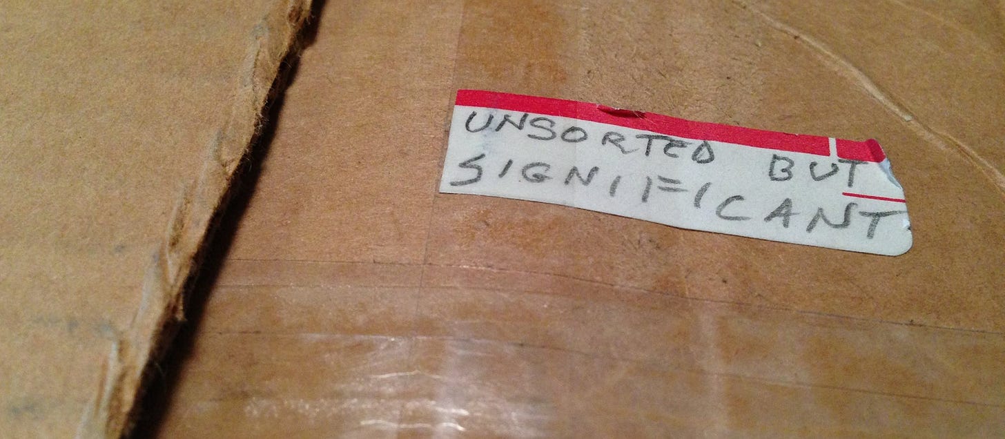 MY FATHER HAD a box that I discovered just before he died, sitting in the recesses of his study closet. It said, simply and in pencil, “unsorted but significant.” That ethos helped push me to start a Substack of that name and, by extension, to this newsletter as well.