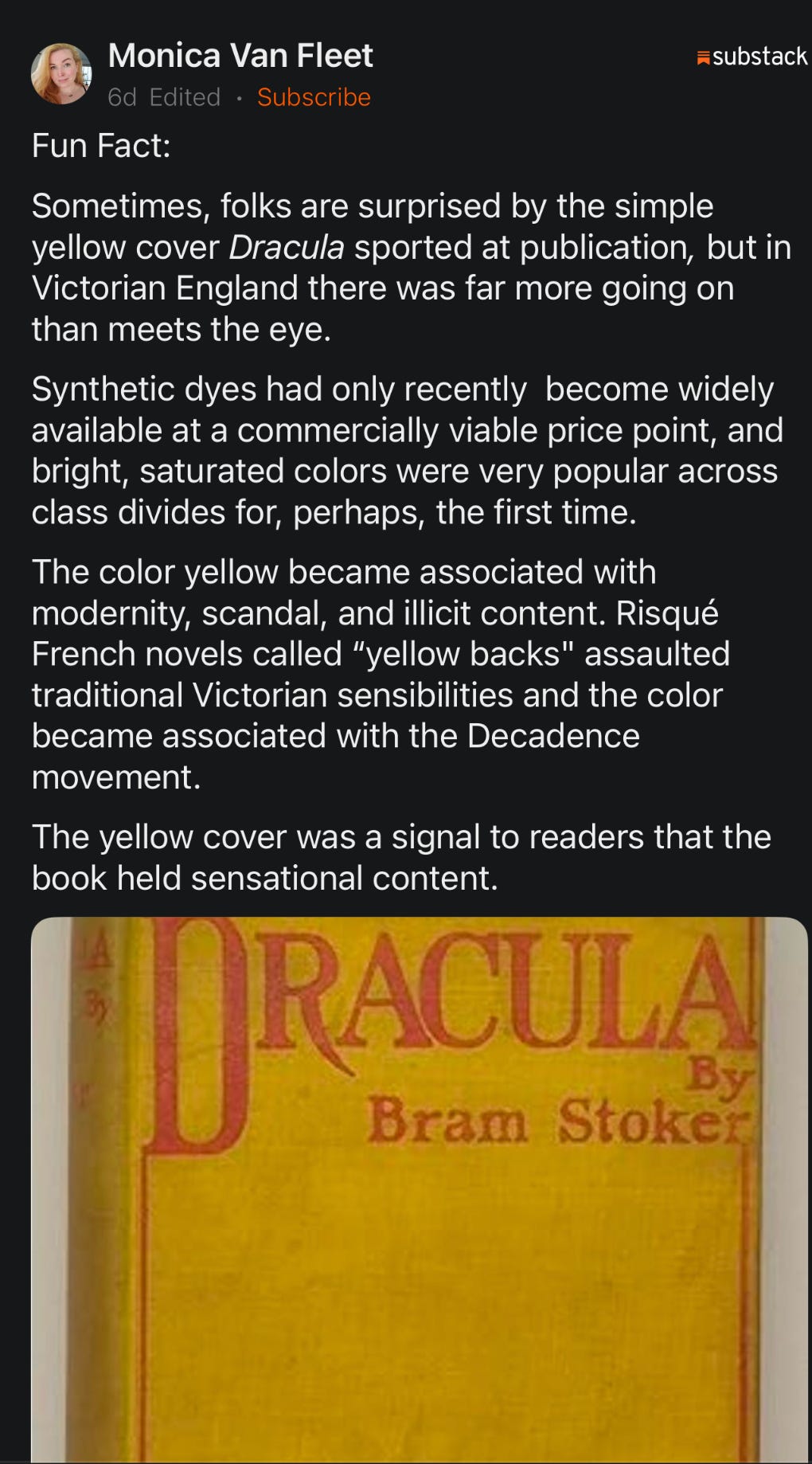 I had no idea about this cover backstory until “Dracula” scholar Monica Van Fleet pointed it out recently. I thought it was really cool in and of itself — but even more so when you think of the book cover (again, not the dust jacket) being part of the story in some small way.