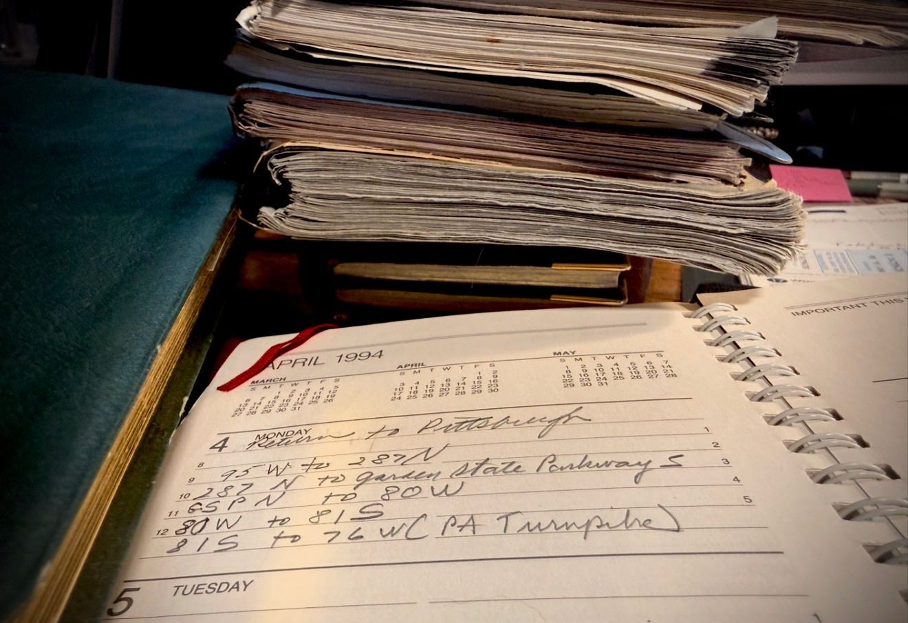 Some jog my old memories. Sunday, Aug. 24, 1986, the day my parents drove me to my first day of college: “Ted to Penn S.U. Econolodge AARP Milesburg. 220-150 at 80 (arrive before 6).”